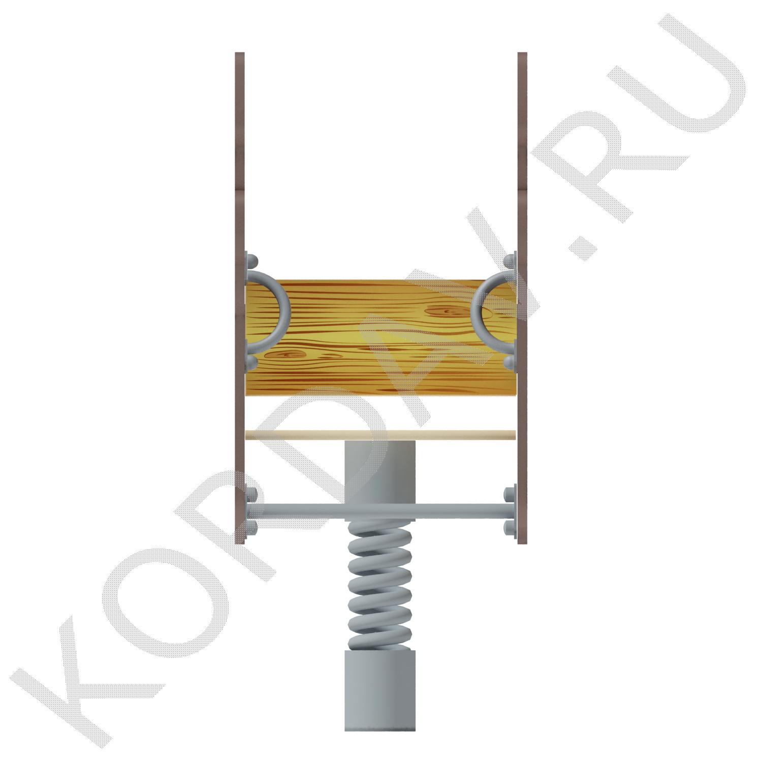 Борта изделия выполнены в виде быка и окрашены соответствующе. Их размер составляет 880х780х18 мм. Лавка с габаритами 540х230х18 мм окрашена в бежевый цвет. Спинка имеет размер 540х230 мм при толщине 18 мм. Также предусмотрены ручки из профилированных труб диаметром 22 мм. Подставка для ног имеет толщину 27 мм. Одним из основных элементов конструкции является пружина. Она изготовлена из металла высокой прочности, и способна выдержать большие механические нагрузки.