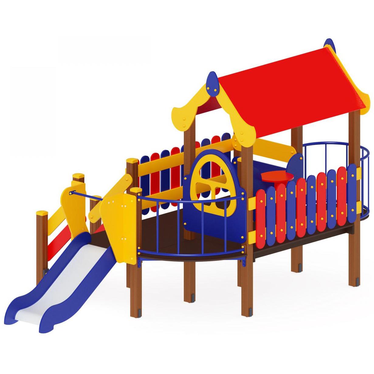 ГоркаСкат горки шириной 540 мм, выполнен из нержавеющей стали толщиной 1,5 мм — цельного листа, утопленного в паз бортиков горки. Борта выполнены из влагостойкой фанеры толщиной 24 мм, шириной не менее 150 мм. Опорный каркас горки выполнен из профиля 40х25 и 30х30 мм. Стартовая площадка горки ограждена стальной перекладиной из трубы диаметром 27 мм, установлена на высоте не менее 600 мм от уровня поверхности стартового участка горки и побуждающая ребенка присесть. Размер горки в плане 540х 1350 х750 мм(h).