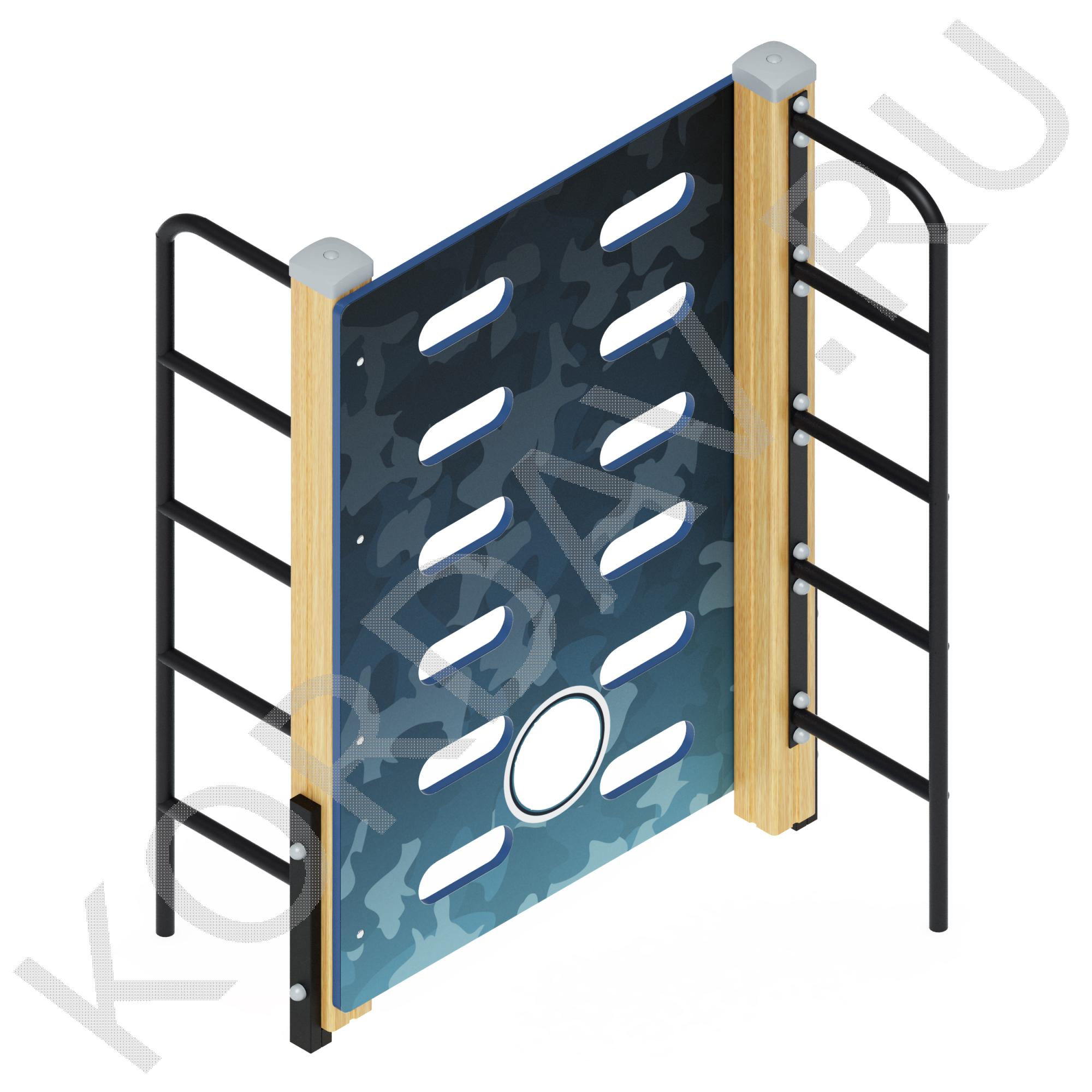 Шведская стенка с отверстиями предназначена для лазинья представляет собой панель с прорезями, закрепленную парными стойками. Конструкция оснащена удобными лестницами в нижней и верхней части, чтобы малышам было удобнее играть. Во время игры с этим спортивным снарядом ребенок учится преодолевать препятствия, у него развиваются координация и ловкость. Стенка может использоваться детьми от трех до десяти лет, и предназначена для установки на детской игровой или спортивной площадке, или в образовательном заведении.